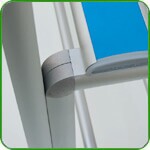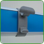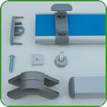 Ganchos de ropa simplemente insertados en el perfil, sin el uso de tornillos. Este sistema garantiza una resistencia excepcional al gancho ,contra el desgarro, así como la posibilidad de mover los ganchos, a lo largo del bastón.