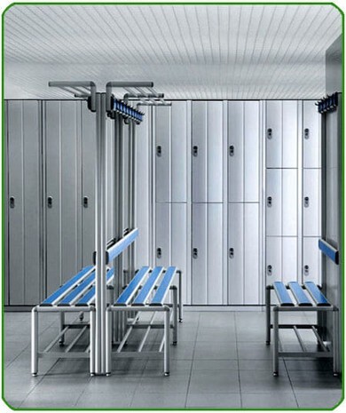 Amplia gama de colores para los listones permitidos, por la inserción de los acabados laminados. Esto le permite elegir los mismos tonos cromáticos, para bancos, cabinas y armarios, lo que le da al vestuario, un carácter de unidad cromática y estética.