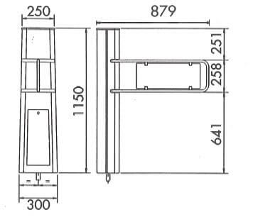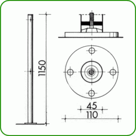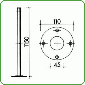 S 913 Vertical en tubo de acero inoxidable (Ø45 cm,) altura 115 cm base circular, Ø11 cm, espesor 3mm con cuatro agujeros para fijar al suelo.