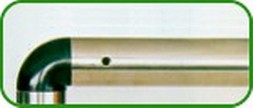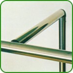 Tubo de acero inoxidable AISI 304 (Ø45mm.) Espejo pulido; curvas cerradas dobladas en frío, soldaduras pulidas con tubo fresado y soldado; Conexiones a tierra en acero inoxidable.