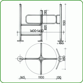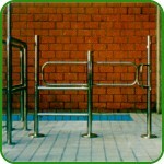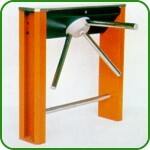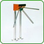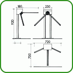 Sistema de control de acceso con tres brazos montados en un elemento giratorio. Estructura en chapa cromada y pintada movimiento mecánico unidireccional con sistema antipánico.