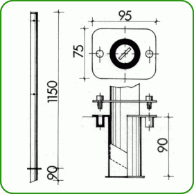 S 914 El acero inoxidable vertical (Ø45 mm), altura 115 cm, con brida de base rectangular de dos orificios, debe instalarse en el piso de la base especial de acero inoxidable tipo P1243 para su instalación.