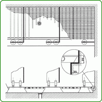 Esta solución permite reemplazar la secuencia habitual, de platos de ducha, un canal con desarrollo continuo, siempre que la batería de las duchas, y cubierto por una única rejilla de ancho adecuado, especialmente diseñado.