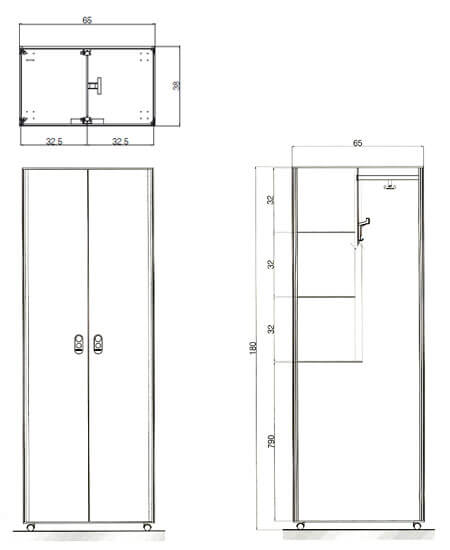 Construido con materiales inoxidables e ignífugos de Clase 1, con certificado, está equipado con ruedas giratorias que permiten un fácil movimiento para limpiar el piso. Ha sido diseñado para permitir una desinfección fácil y perfecta dentro del armario y para construir un mueble con una excelente connotación estética y acabados precisos.