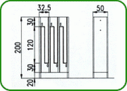 Estructura de paneles laminados sólidos de alto espesor; 6 mm para los lados, 4 mm para el fondo, 8 mm para los estantes finales; Perfiles de aluminio anodizado de 15/100 mm.