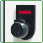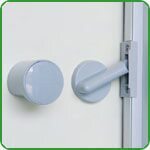 Puertas para habitaciones o cabinas de inodoros (excepto cabinas de ducha) con cerradura tipo Meroni que proporciona: dispositivo de cierre solo en el lado interno; dispositivo de apertura de seguridad operable desde el exterior; Indicador de libre / ocupado.