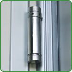 Paradas en perfil de aluminio anodizado plateado o negro con amortiguador y elemento de sellado en neopreno negro.
