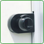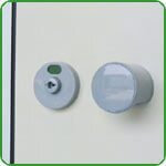 Cerradura de la puerta Tipo de presión / apertura con dispositivos libres / ocupados o, alternativamente, con un bloqueo totalmente de nylon con perno giratorio, manija y dispositivo libre / ocupado; ideal para usar en cabinas de ducha porque es insensible a la corrosión y depósitos de cal.