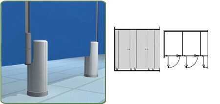 Las versiones con fijación al suelo están indicadas donde se planifica un uso particularmente intenso o donde se prevén acciones indebidas o incluso de tipo vándalo: instalaciones deportivas, aeropuertos, ferias, escuelas, estaciones de ferrocarril, industrias en general.