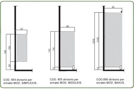 El modelo MAXI / S: con una altura máxima de cm. 220, completo con soporte de piso y conexión superior en aluminio anodizado.