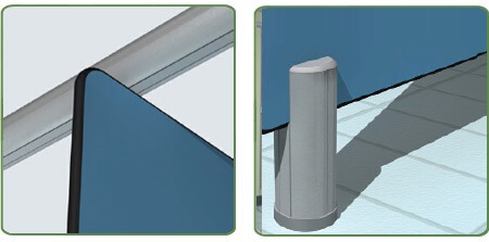 Estas soluciones tienen un gran impacto estético y, al mismo tiempo, se caracterizan por la ausencia absoluta de dispositivos de fijación visibles como tornillos, remaches, etc. Esto permite un saneamiento fácil y correcto de estructuras y pisos en particular. Finalmente: sin mantenimiento y duración ilimitada.