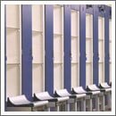 Los vestuarios deportivos normalmente, bordean las áreas de servicio para las cuales Patentverwag ha diseñado elementos de muebles en laminado sólido, aluminio anodizado, nylon y acero inoxidable: tabiques, inodoros y duchas, superficies de fregadero, estantes para almacenamiento hasta los estantes más complejos.